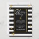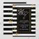Stilvolle, moderne Urlaubseinladung in schwarz-weißem, horizontalem Streifen. Die Grafiken von goldaussehenden Schneeflocken schmücken den Hintergrund, und ein goldgekleideter schwarzer Textbereich mit weißem Text, der Happy Holidays in typografischem Stil liest. Personalisieren Sie den weißen Text für Ihre Feier. Matching Produkte sind erhältlich.