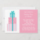 Diese lustige Party Einladung bietet einen Stapel Geschenke in aquamarinen und rosa und anpassbaren Party Details. Dieser Kuchen lädt zum Geburtstag oder Feiern ein. Einige Elemente © BabyStar Design