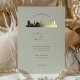 Diese wunderschön gestaltete Hochzeitseinladung zeigt eine raffinierte Goldfolie-Silhouette der ikonischen Skyline von Istanbul, Set vor einem sanften, grünen Hintergrund. Die elegante Komposition verbindet moderne Eleganz mit zeitlosem Charme und macht sie zu einer idealen Wahl für Hochzeiten in Urlaubsort, Kulturfeiern oder klassische Zeremonien, die von der reichen Geschichte Istanbuls inspiriert sind. Die Typografie zeichnet sich durch eine harmonische Mischung aus Serif- und Script-Schriftart aus, die das luxuriöse Ambiente der Einladung noch verstärken. Die hochwertigen Foliendetails verbessern das Design und machen dieses Hochzeitsgeschirr elegant und unvergesslich. Diese Einladung ist vollständig anpassbar und in hochwertigen Papierveredelungen erhältlich, wodurch ein gepflegtes und raffiniertes Aussehen gewährleistet wird. Eine ideale Wahl für Paare, die ihre Liebe in Istanbul feiern oder die die historische und kosmopolitische Schönheit der Stadt schätzen.
