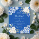 Für eine elegante und romantische Hochzeit. Ein kobaltblauer Hintergrund mit weißen Blumen, Rose und weißen Spitzen. Personalisieren Sie Ihre Namen und Details und fügen Sie diese hinzu. 1 Blatt = 1 Einladung mit Druckkante bis Kante.