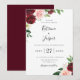 Burgund, rot und weiß Aquarell Blumenarrangements mit weichen botanischen Ästen, elegante Hochzeitseinladung. Romantische Typografie Design Stil Vorlage. Die Rückseite der Karte weist eine solide, rote Koordination auf.