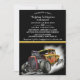 Frisierte Auto Party Feuer Hochzeit Einladung hat eine orangefarbene Flamme aus und um ein altes Auto herum. Unten in der Mitte und ein schwarzer Hintergrund mit einem Platz, um alle Ihre einladenden Text. Dieses einzigartige Design verbindet eine formale Hochzeitseinladung mit einer lebendigen frisierte Auto-Illustration. Im oberen Teil finden Sie Details zu seinem Namen und ihrer Hochzeitsfeier am "Samstag, 18. Januar, 20XX" in Vancouver, BC. Unten beschleunigt ein kräftiges, farbenfroh gestaltetes frisierte Auto mit freiliegenden Motor- und Abgasleitungen den Vormarsch und schafft einen bemerkenswerten Kontrast der Themen.