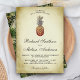 Erleben Sie Ihren Gast mit dieser eleganten Hochzeitseinladung mit einem exotischen Ananas vor einem rustikalen Pergament-Hintergrund. Fügen Sie einfach Ihre Veranstaltungsdetails zu dieser einfach zu bedienenden Vorlage hinzu, um sie zu einer einmaligen Einladung zu machen. Dreh die Karte um ein schönes Vintages Blätter auf der Kartenrückseite zu zeigen.