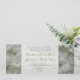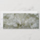 Eine schmale Hochzeitseinladung mit einem Hintergrund von weißen Hydrangeas vor und zurück. Personalisieren Sie den grünen und grauen Text in der Mitte mit Details Ihrer Veranstaltung. Die Aufnahmen stammen von den Eltern der Braut. Suchen Sie nach passenden Artikeln in Jill's Paperie.