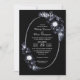 Eine elegante schwarz monochrome Blumen Hochzeit Einladung. Eine UAWG-Anfrage ist im unteren Teil der Einladung enthalten, um Ihre Gäste zur Bestätigung ihrer Anwesenheit zu erinnern.