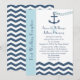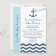 Diese Hochzeitsempfehlung hat ein nautisches Thema und zeigt die Worte "Post Wedding Reception" auf der links auf einem hellblauen Streifen, aber der Mittelpunkt des Designs ist ein Anker mit einer Herzkette, die in ein Zickzack oder Zickzackmeer geworfen wird. Sie können die Einladung mit dem Namen der Braut und Bräutigam, Datum und Ort der Ehe und alle Ihre Post Hochzeitsempfang Details anpassen. Copyright henishouseuse paper