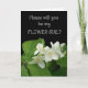 Eine stilvolle Einladungskarte für ein Blumenmädchen, mit mockorangefarbenen Blüten, von einem Foto von Judy Adamson. Gerne ändere ich auf Wunsch den Text an der Vorderseite und Sie können das Innere nach Ihren Wünschen anpassen.