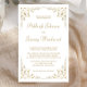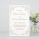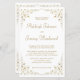 Diese elegante Vintag-inspirierte formelle Hochzeitseinladung enthält den Text in goldfarbenem Drehbuch und Serif-Schriftart, gerahmt von einem zarten Vintagen Goldrebe-Motiv. Der Rahmen wird auf der Rückseite wiederholt.