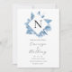 Einladung Monogram. Schöner blauer Blumenkranz in Aquarelltönen, umgeben von elegantem Schriftart und Typografie. Ideal für jede Hochzeit zu jeder Jahreszeit.
