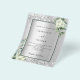 Bitte beachten Sie, dass diese Einladung auf Flyer Papier und sehr dünn ist. Umschläge sind nicht enthalten. Für dickere Einladungen (gleiche Gestaltung) besuchen Sie bitte unseren Shop. Imitate silberfarbener Hintergrund mit weißen Blumen, Blume, Eukalyptusgrün und Imitaten silberne Glitzer, Glitzern. Personalisieren und fügen Sie Ihre Namen und Hochzeitsdetails. Schwarze Buchstaben.