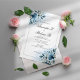 Einladung zur Hochzeitsfeier mit blauer Blume
