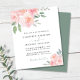 Eine preisgünstige und elegante Hochzeitseinladung mit Aquarellbouquets aus rot-rosa Blumen und heller Weidegrün, stilvollem Drehbuch und moderner Typografie.
