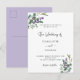 Ein stilvoller weißer Hintergrund auf der Vorderseite. Mit Eukalyptus und Lavendel-Blumen dekoriert. Personalisieren Sie Ihre Namen und Details und fügen Sie diese hinzu. Zurück: Lavendelhintergrund. Tipp: Wenn Sie es nicht so gewollt haben, dass es wie eine Postkarte aussieht, klicken Sie auf Anpassen, gehen Sie auf die Rückseite und entfernen Sie den Trenner und posten Sie die Briefmarke.