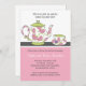 Schön rosa Blumensippe und Babydusche Einladung. Eine rosa und grüne Blumenkanne und eine Tasse Tee. Einige Elemente corazondulce.etsy.com.