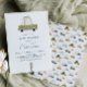 Die Babydusche lädt in minimalistischem Stil mit einem grünen Auto und einem Muster auf der Rückseite des Autos ein. Sie können diese Einladung mit Ihren eigenen Daten im Bereich "Personalisieren Sie diese Vorlage" personalisieren.