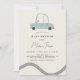 Die Babydusche lädt in minimalistischem Stil mit einem blauen Kleinwagen und dem Muster der Autos auf der Rückseite ein. Sie können diese Einladung mit Ihren eigenen Daten im Bereich "Personalisieren Sie diese Vorlage" personalisieren.