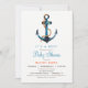 Nautical Anchor Junge Dusche Einladung. Das Angebot umfasst einen blauen Anker und ein orangefarbenes Schildkrötenmuster.