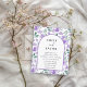 Mit dieser eleganten, floralen Hochzeitseinladung in Aquarellfarben laden Sie Ihre Gäste stilvoll ein. Freuen Sie sich auf üppig lila Pfannkuchen und die sich ergänzenden botanischen Eukalyptuselemente, die in einem hübschen Bohustmuster mit einem anmutigen Bogendesign in den Details Ihrer Hochzeit angeordnet sind. Dieses moderne und zeitlose Design ist perfekt für Boho, Rustikal, Garten, Wald oder klassische Hochzeitsthemen. Die zarte Mischung aus lila Blumen und Salbei-Grün schafft ein raffiniertes und bezauberndes Aussehen für Ihren besonderen Tag. Einfach anpassbar, um es wirklich zu Ihrem eigenen zu machen.