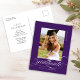 Lila Elegante Script Graduation Party Einladende Postkarte bietet ein schönes und elegantes Skript, das Ihr Foto überträgt, zusammen mit Ihren Party-Details und Foto auf der Rückseite.