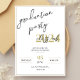 Schaffen Sie eine schöne und elegante Graduiertenparty mit minimalistischem Design, das in den Farben Weiß und Gold gehalten ist. Die Einladung enthält ein schwarzes Skript, das dem Ereignis eine Touch von Raffinesse und Formalität verleiht.