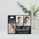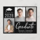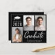 Moderne, preisgünstige Black Graduation Party mit 3 Foto Collage, "Graduate" in großen weißen Buchstaben und das Graduate Jahrgang, Name und Schule oder Universität in schlicht weißer Typografie. Fügen Sie die Party-Details auf der Rückseite hinzu.