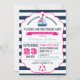 Navy und weiße Streifen Print Hintergrund mit Segelboot und Life-Saver Float nautische twin Mädchen Baby Dusche Einladungskarte.