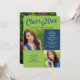Lime green und marineblau Foto Abschlussfeier Einladung. Fügen Sie zwei Fotos vorne und eins hinten hinzu.