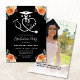 Nursing School Graduation Party Einladung mit Graduate Foto auf der Rückseite der Einladung. Floral Registered Nurse RN Graduation Party Einladung mit schwarzem Hintergrund und hübschen pfirsich, beige und orange Aquarellblumen. Fügen Sie die Details der Abschlussfeier hinzu, um Familie und Freunde zur Feier Ihrer Krankenschwester Absolvent.