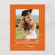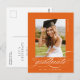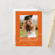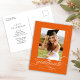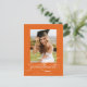 Orange Elegant Script Graduation Party Einladung Postcard verfügt über ein schönes und elegantes Skript, das Ihr Foto überträgt, sowie Ihre Party-Details und Foto auf der Rückseite.