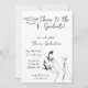 Retro Scribble Graduation Party Einladung mit Gradhut und Beinen mit Heelsen und Cocktail Glas.