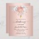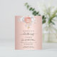 Für eine elegante Taufe, Taufe, Feiern eines kleinen Mädchens. Ein Imitat Rose gold metallisch aussehend Hintergrund. Die Einrichtung besteht aus Rose-Gold und weißen Blumen, Rose und einem vergoldeten Kreuz der Imitate. Personalisieren und fügen Sie den Namen des Kindes und die Details.