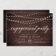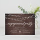 Unsere rustikalen, eleganten Einladungen mit der Verlobungsfeier zeichnen sich durch einen dunklen Holzputz mit weißen Lichterketten an der Oberseite und durch eine schicke Kalligraphie-Schriftzeichen-Typografie aus. Personalisieren Sie Ihre Feierlichkeiten mit Ihren Verlobungen unter dem weißen Buchstaben.