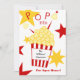Eine offene Hauseinladung für Lehrer mit einer Illustration eines rot-weiß gestreiften Containers von Popcorn umgeben von Sternen auf der Vorderseite. Die Rückseite ist rot und weiß. Personalisieren Sie den Text vorne und hinten.