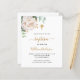 Weiße, mit Eukalyptusgrün dekorierte Untergründe, eine weiße Perle und goldene Blätter. Personalisieren und die Kinder Name und Zeremonie Details. Schwarze und goldfarbene Buchstaben. 1 Blatt = 1 Einladung mit Druckkante bis Kante.