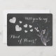 Eine lustige, aber elegante Einladungskarte für die Trauzeugin, die ein skurriles Blumendesign mit blauen Blumendekorationen aufweist, das wie winzige Perlen aussieht. Silberkalkplatten-Herzen schweben in der Mitte, mit dem eigenen Text oben und unten. Auf der Rückseite befindet sich der gleiche Chalkboard-Hintergrund mit dem restlichen benutzerdefinierten Text. Es gibt ein passendes Design für Brautmädchen in unserem Geschäft. *Clip Art, die in diesem Design verwendet wird, ist urheberrechtlich geschützt durch Encore Software, Inc., die die Nutzung für ihre Lizenzgeber erlaubt. Alle Rechte vorbehalten.