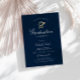 Eine elegante marineblaue Abschluss-Zeremonie-Karte. Die Textdetails und das Bild können personalisiert sein.