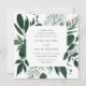 Unsere Hochzeitseinladung im Wilden Wald in einem einzigartigen quadratischen Format umrahmt Ihre Hochzeitsdetails mit einer Grenze von lackiertem, wasserfarbenem Blattwerk in winterlichen Schattierungen von Wald und Jäger grün. Eine moderne und Bio Wahl für Hochzeiten im Winter oder Frühjahr.