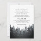 Unsere rustikale und winterliche Hochzeitseinladung mit Kiefernbäumen in einer kühlen Waldlandschaft mit einem üppigen Pinienwald in reichen Schattierungen von Mitternachtsblau und Holzkohlegrau. Ideal für Winterhochzeiten in Wald, Wald, Berg oder im Freien.