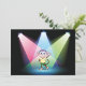 Dieses Design ist von einem Affen im Scheinwerferlicht. Der Affe ist im Cartoon-Stil gekleidet und fertig und sieht aus, als würde er eine Show machen. Das Geld ist auf der Bühne unter einigen sehr bunten Scheinwerfern stehend. Dieser Affe in Spotlights Design sieht gut aus auf diesen Einladungen