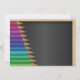 Dieses Design ist Bleistifte an einer Tafel. Es hat einen Stapel farbiger Bleistifte auf einer Seite mit einer schwarzen Tafel im Hintergrund. Diese Stifte auf einer Tafel Design sieht gut auf dieser Einladung