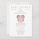 Niedliche kleine Pink Baby Owl Baby Girl Dusche Einladungen mit Pink Polka Dot Pink Border einfach modern minimalistisch,