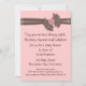 Rosa und braune Babydusche Einladung. Dunkelbrauner Kruffelbogen mit rosa Knopfdesign auf rosa Hintergrund.