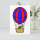 Reiten in einem Heißluftballon macht viel Spaß. Du treibst weg. Dieses Design verfügt über einen tollen Heißluftballon. Der Ballon selbst ist rot und blau. Im Korb ist eine einsame Person, die lächelt und winkt. Dieses Heißluftballon Design sieht gut aus auf diesen Einladungen