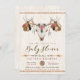 Boys antler invitation douche bébé avec plume de saumons et crâne de cerf perle et flèches sur un arrière - plan rustique en bois. Vous pouvez facilement customiser cette invitation de baby shower tribal garçons pour votre événement en ajoutant simplement vos détails.