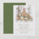 Wald Kirchenwald Hochzeitseinladungen Schöner Wald mit Kiefernbäumen, rustikale Kirche und neutrale Tans, weiches Grün, Senfgelb und blass Blätter und getrocknete Blume auf einem Imitat, sehr hellgraue Hintergrund. Die Rückseite ist ein waldgrüner Hintergrund. Ideal für eine Hochzeit mit einem naturbelassenen Bergpanorama. Benötigen Sie Hilfe beim Layout, schicken Sie mir einfach den Link zu tkatz@me.com
