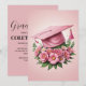 Feiern Sie den Meilenstein Ihres Absolventen mit diesen eleganten und schicken rosa Einladungen zum Abschluss. Die Aquarellfarben sind mit ihrem Blumendesign perfekt für High School Abschlüsse geeignet. Die moderne, mädchenhafte Ästhetik fügt Ihrem besonderen Tag eine Touch von Eleganz hinzu. Passen Sie sie mit dem Namen Ihres Absolventen, den Party-Details und mehr an, um eine wirklich personalisierte Einladung zu schaffen.