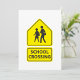 Ein authentisch aussehendes Design eines Schildes über die Schulüberfahrt. Wir alle haben diese Zeichen gesehen, und man sollte ihnen Beachtung schenken. Dieses Design ist ein gelbes Schulkreuz-Schild. Der obere Teil hat ein Bild von den Kindern, die überqueren, und der untere Teil hat die Worte Schulüberquerung. Dieses Schulkreuz-Schild sieht auf diesen Einladungen großartig aus