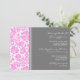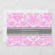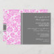Einladungen in elegante, helle Baby-Rosa, dunkelkohlegraue und weiße klassische und schicke florale Damask Vintage Muster. Voll anpassbar mit Ihren Partnerdetails. Auch in einer breiten Palette von passenden Hochzeitsprodukten erhältlich.