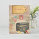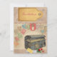 Vintage Art Reisen Thema Hochzeit Einladungen mit einem Kofferraum und Briefmarke Hintergrund. Einfach anpassbar, sodass Sie alle Ihre eigenen Details hinzufügen können.