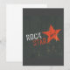 Ein Design für den Rockstar. Dieses Design hat die Worte Rockstar in rot und weiß und neben ihnen ist ein großer roter Stern. Das ist Set auf einem dunklen Hintergrund, das aufgereiht wurde, um ihm einen tollen Look zu verleihen. Dieses Rockstar-Design sieht auf diesen Einladungen großartig aus